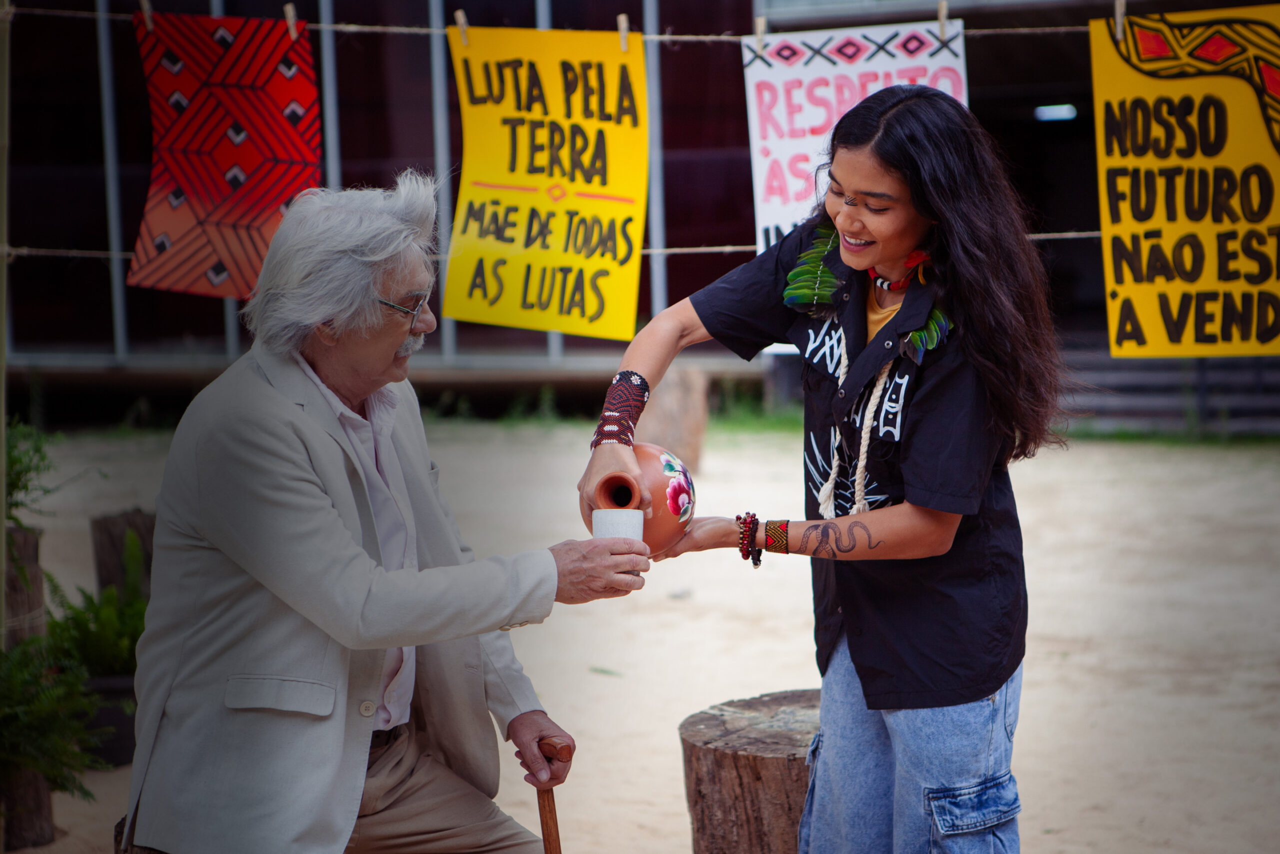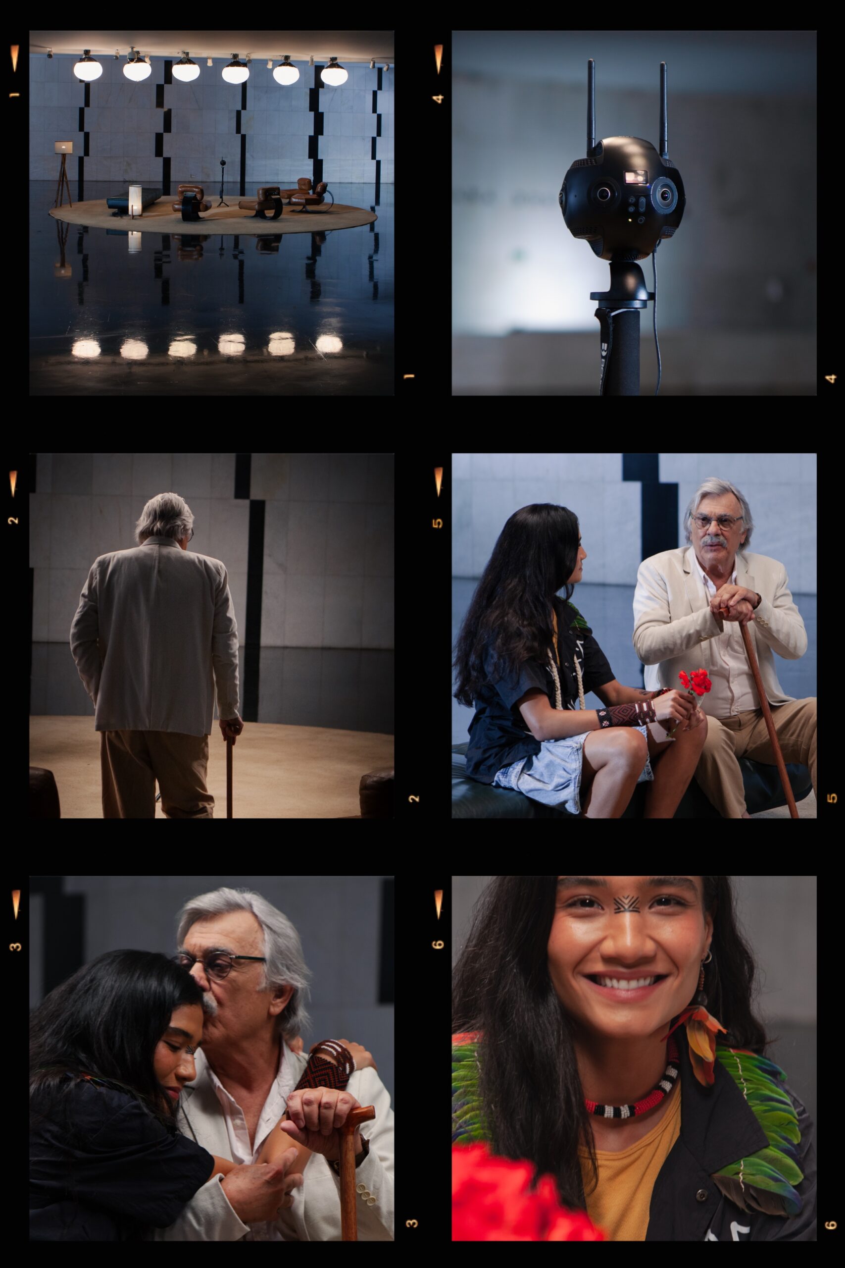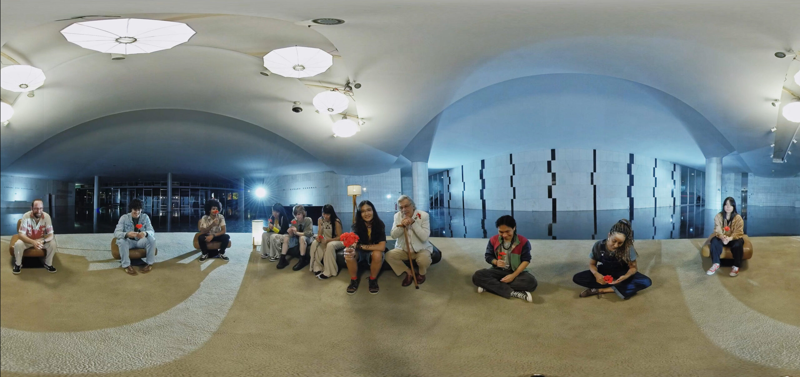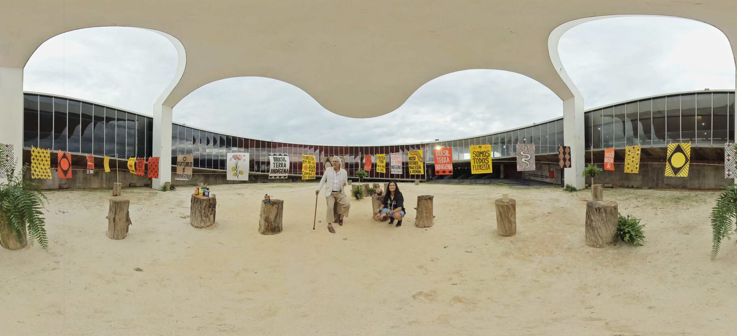 Em “Encontro com Darcy”, você presencia o momento em que Darcy Ribeiro (1922-1997), antropólogo, educador e senador, conversa com Yandara, uma jovem indígena urbana em processo de retomada cultural que se sente dividida entre mundos. Neste diálogo geracional que teleporta o espectador para o Memorial dos Povos Indígenas, uma paisagem natural e para o Salão Negro do Congresso, Darcy provoca Yandara a tomar uma das duas únicas opções que ele vê na vida: Se resignar ou se indignar… E assim como o incansável Darcy, Yandara não pretende se resignar nunca.